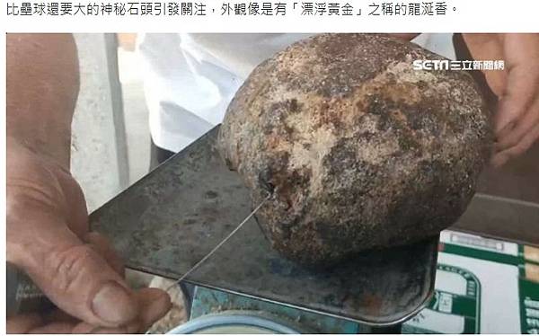 比壘球還要大的神秘石頭引發關注,外觀像是有「漂浮黃金」之稱的龍涎香。