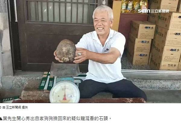金門有民眾帶著狗狗到海邊,狗狗猛聞一顆大約1.5公斤重的石頭,有朋友告訴他很可能是相當稀有、用來當作香水定香劑的龍涎香,他根據網路相關新聞去做實驗,發現很有可能,讓他相當驚喜,準備要拿去相關單位做鑑定。