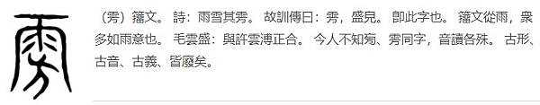 雱是一個漢字,意為雨雪下得很大的樣子。