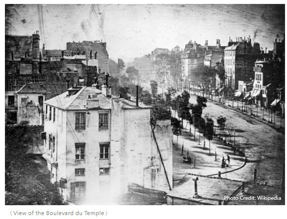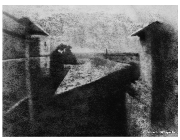 在攝影史上開起第一槍的,是法國藝術家兼發明家Joseph Nicéphore Niépce在1826年(或1827年),他在法國勃艮地「曝光」(在當時還沒有攝影的概念)了世上第一幅影像《窗外風景》(View from the window at Le Gras)。一個不懂影像潛規則的中國人,意外造就當時「攝影史上最快樂的影像」 - The News Lens 關鍵評論網 https://bit.ly/35AmcfL