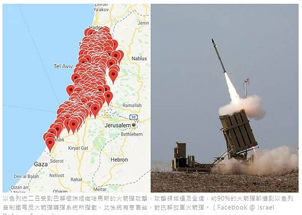 以色列國防軍以其特殊的防禦環境,獨門發展專門對付低速火箭彈的鐵穹防禦系統,幾乎成為21世紀以色列自制武器之光,不光美國採購,連印度、北約等盟國都陸續訂購。(Facebook @ Israel Defense Forces)