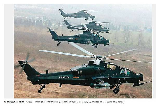 5月底,共軍曾派出主力武裝直升機掠海逼台,引起國安高層的關注。(翻攝中國軍網)© 由 鏡週刊 提供 5月底,共軍曾派出主力武裝直升機掠海逼台,引起國安高層的關注。(翻攝中國軍網)