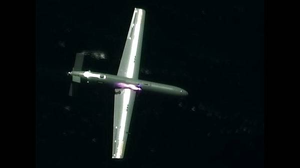 「空中霸主」(Sky-Striker) 巡飛武器在試驗中,遭高功率雷射擊落。(取自以色列國防部官網)