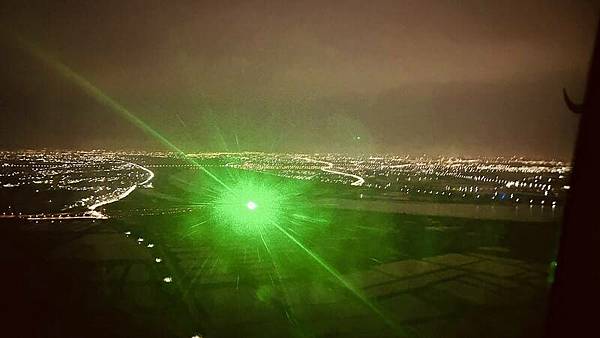在台南機場北面10海哩、方位330的位置,遭地面民眾持雷射光束持續照射長達10餘秒,經凌天航空向台南機場通報,並檢附照片及影片,追查該名嚴重影響飛航安全的民眾。