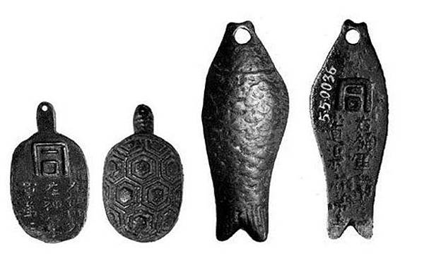 宋制與唐不同,唐朝的魚袋以袋盛魚符,而宋代的魚袋,內已無魚符,只是在袋上用金、銀飾為魚形,垂掛在公服的後面,以明尊卑、高下,失去了符契的作用。