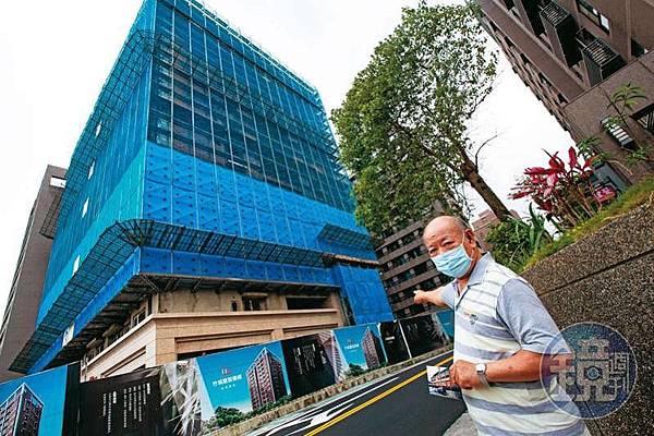 周元榮祭祀公業的祠堂被賣掉,現正改建豪宅「竹城。有樂町」大樓(圖),子孫周丁山站在昔日祠堂前說,上百億元的祖產被賣到剩5千萬元。© Mirror Media 周元榮祭祀公業的祠堂被賣掉,現正改建豪宅「竹城。有樂町」大樓(圖),子孫周丁山站在昔日祠堂前說,上百億元的祖產被賣到剩5千萬元。