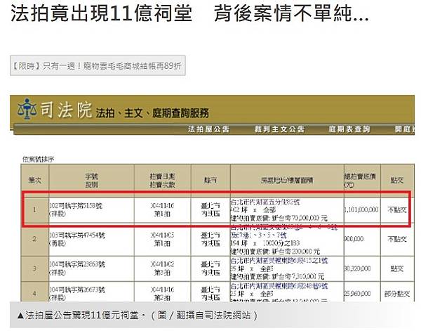 ▲法拍屋公告驚現11億元祠堂。(圖/翻攝自司法院網站)