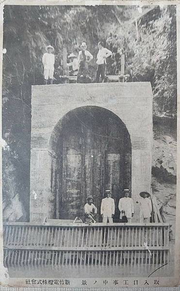 1917年啟工,由新竹市第一進士第鄭用錫家族投資新竹電燈會社軟橋電廠取水口照片。
