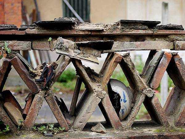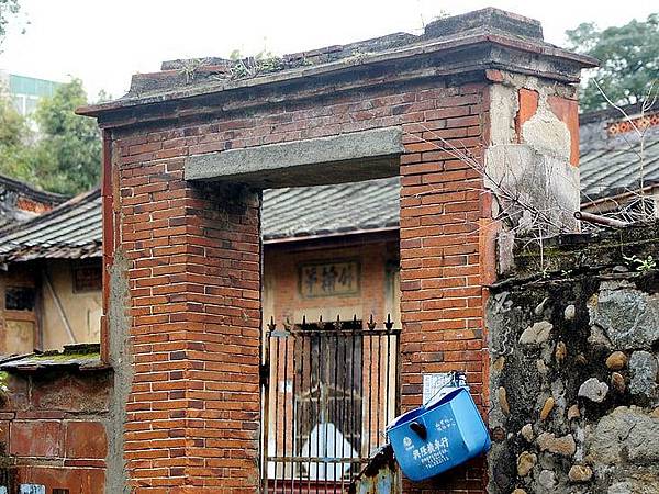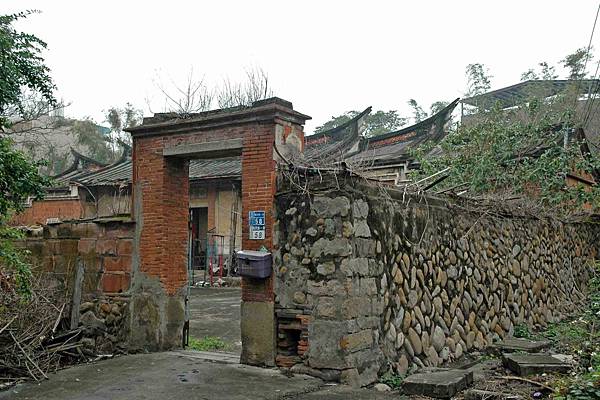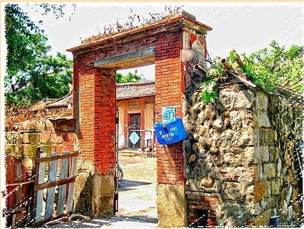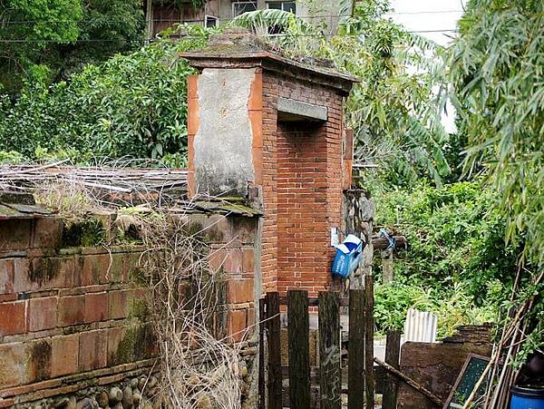 「外翰第」左側為一道石砌牆二剛方則保存紅磚石牆。已在此居住五十年的張培枝、劉珍妹夫婦表示,