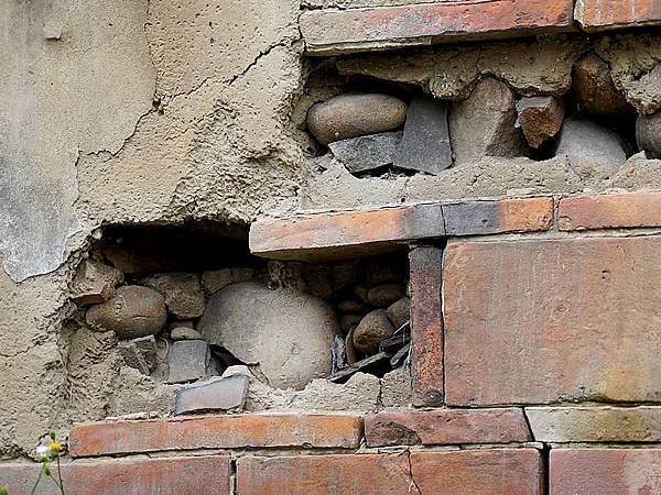 院牆採卵石砌牆基與斗子砌牆,並遺有多處完整的銃孔(火槍孔)