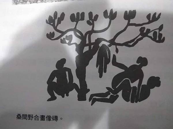 1977 年由四川省新都縣所徵集的 10 餘塊畫像磚裡,其中的內容有搗米、釀酒、樂舞、雜技等,最特殊的兩塊為〈桑間野合〉,畫像磚長 49.5 公分、寬 29 公分、厚 6 公分。