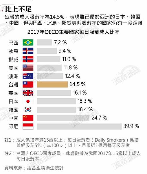 風數據》台灣成人吸菸率降到14.5%,雖贏日韓,但離這些低吸菸率國家還遠得很…-風傳媒 https://bit.ly/3upVX29