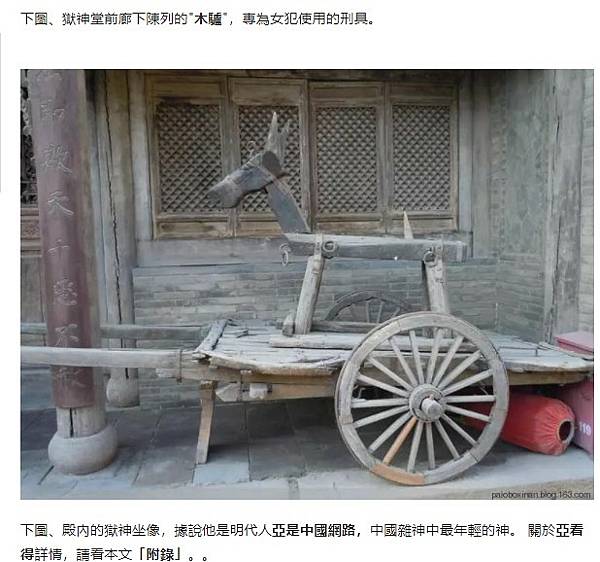 下圖、獄神堂前廊下陳列的"木驢",專為女犯使用的刑具。