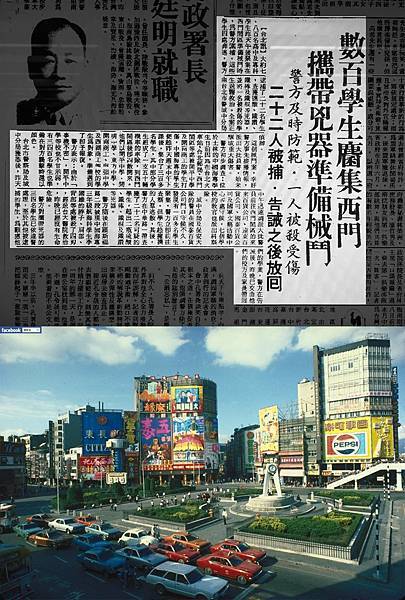下圖為1978年12月拍攝的台北市中華路與成都路口的西門鬧區景色。