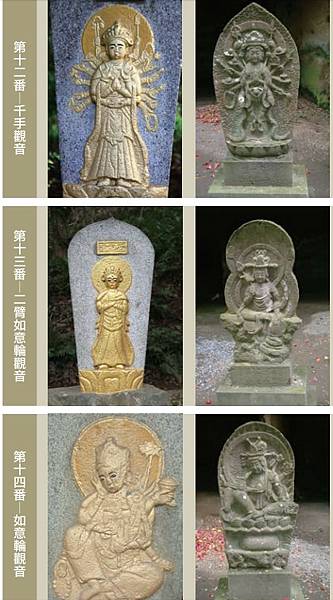 日本最著名的「三十三觀音靈場」,在阪東、西國與北海道,很多日本人每年要花五、六天,走完所有靈場朝拜,有些寺廟乾脆供奉三十三觀音,其中有一間供奉三十四尊,讓信徒朝拜百尊觀音滿願。