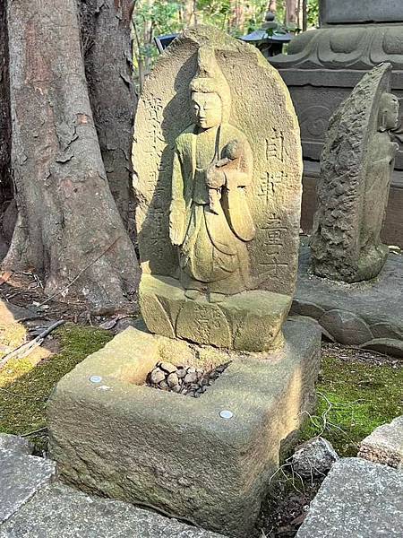 圖片:在#18號聖觀音石觀音的石柱背後,經由時間的風化,那些被刻意抹上的水泥,逐漸脫落,漸漸顯露出的是石柱本身的痕跡,也就是那本應該被保存的「昭和四年八月」的字樣。部分石觀音像後面也還可以找到,17號的千手觀音像背後的字樣就比較淺。