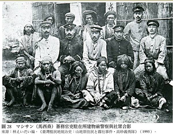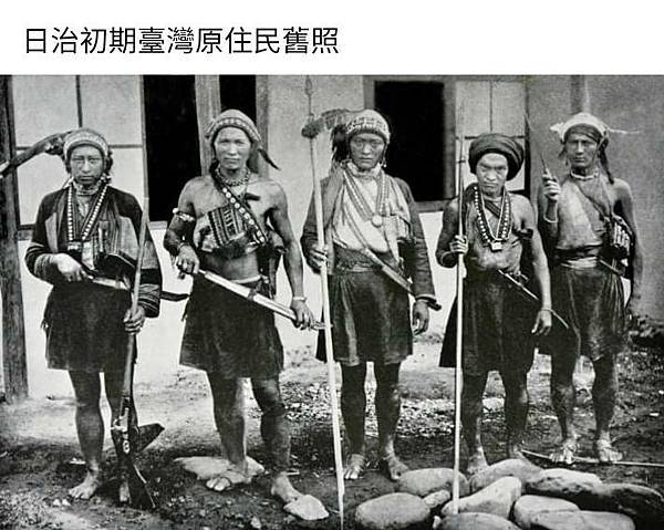 手持長矛、大砍刀、槍支和獵犬的新竹賽夏族勇士準備出獵1920-1930間