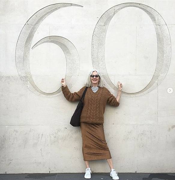 Sylviane Degun年輕時,因為工作移居英國倫敦,熱愛文學與電影,曾擔任編輯、作家和撰寫影評,前年剛過完60歲生日,照片中微笑站在畫著60的圍牆前,看起來活潑又時尚!對Sylviane Degun來說年齡只是個數字,不怕歲月無情,是怕失去對生命的熱情!