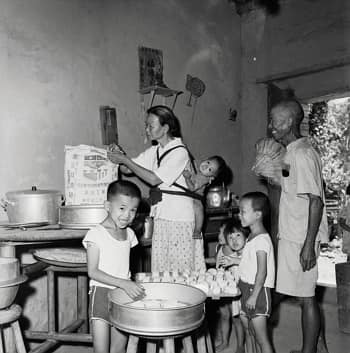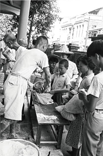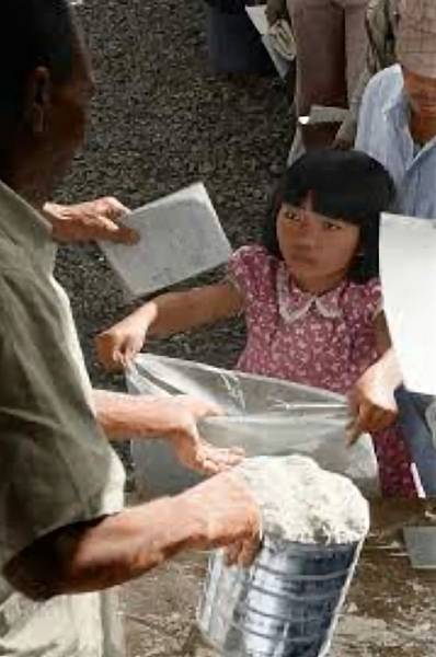 台灣在戰後1952-1960年代物資缺乏的年代,當時台灣未退出聯合國時,當時美國提供不只在建設或人民物資,有很多有(中美合作)也就是美援,人民各地方開始領麵粉的場景