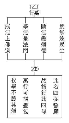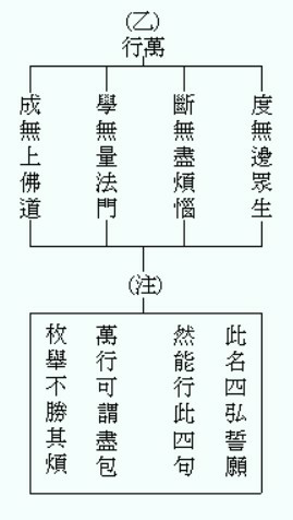 此四大綱要,即名四弘誓願。弘指大心普遍,誓指自制其心,願則志求滿足。這是一切菩薩想要圓滿佛道,必發的通願。