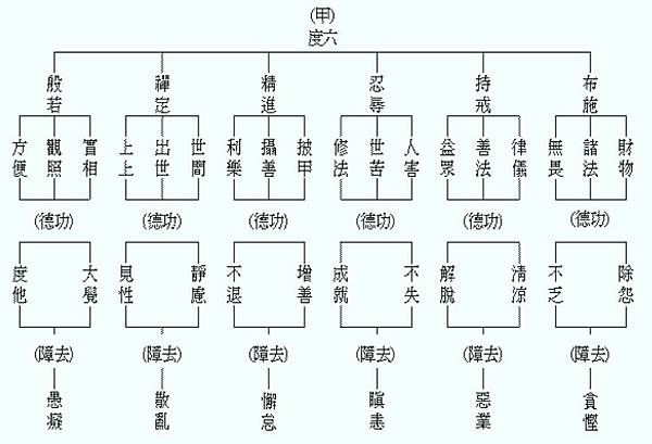 六、智慧度:智慧所以度愚痴,是由禪定所證得的,即所謂:「由戒生定,由定生慧。」但這種智慧,並不是世人博學多聞的有漏智,而是圓融無礙的正智。