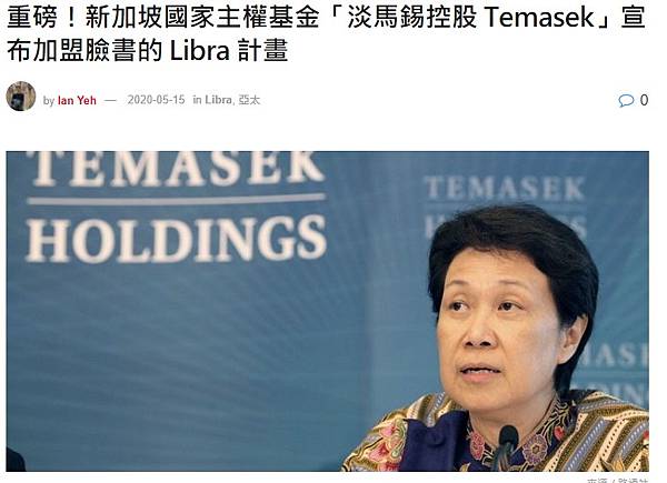 重磅!新加坡國家主權基金「淡馬錫控股 Temasek」宣布加盟臉書的 Libra 計畫 | 動區動趨-最具影響力的區塊鏈媒體 (比特幣, 加密貨幣)
