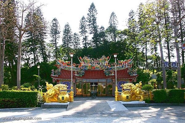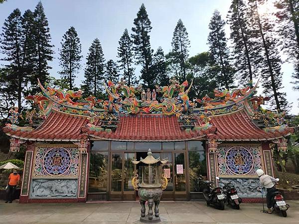 知道這座土地公廟已經快三年了,讓我一直有機會造訪這尊土地公公,是因為長輩朋友從內湖搬家到富岡才結的因緣,土地廟建在寬廣的廣場上,前面緊鄰著一個大大的公園,早晚鄰近居民都會在公園運動或騎腳踏車,初踏進廟堂第一眼,熟悉的客家色彩讓人頓時倍感親切,威嚴的土地爺端坐在上,媽祖娘娘與池王爺分坐兩側煞是威風.