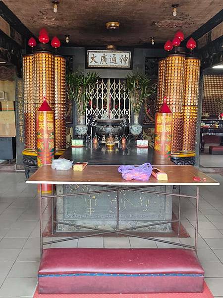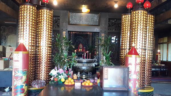此地冬天不時都吹著東北季風,廟方很體貼的幫土地爺裝上落地窗門,不致讓風沙影響內堂的環境,拍照那天吹著寒冷的冬風,遇廟公正在清掃外面的天公爐香腳,我問他說風這麼大香灰到處飛不難過嗎?他笑著說明天是十五,會有很多人來拜拜風大也沒辦法,一股喜悅的等待躍在他臉上,土地廟旁建有戲台,偶而造訪常遇有布袋戲或歌仔戲的演出,這尊土地爺好幸福!