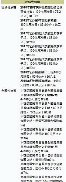 小學五年級的時候曾短暫練習過跆拳道,就讀光復國中一年級時曾短暫加入了壘球隊,之後改加入田徑隊。2012年獲得亞洲青年錦標賽100公尺跨欄的銀牌。