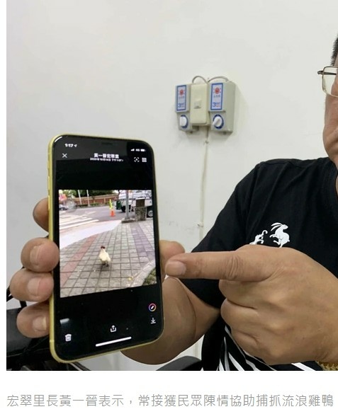 宏翠里長黃一晉表示,常接獲民眾陳情協助捕抓流浪雞鴨。陳韋劭攝