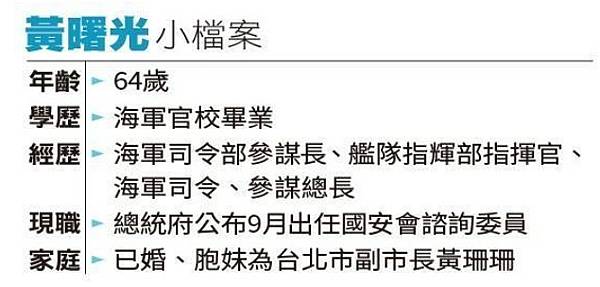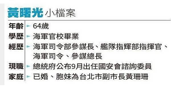 黃曙光退伍後,一度傳聞可能接任國防部長,但因妹妹黃珊珊擔任台北市副市長,才讓他與部長的職務擦肩而過。