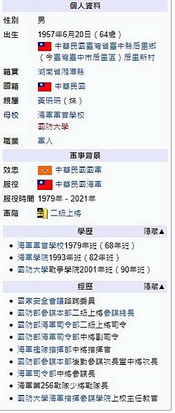 2020年1月16日,調任國防部參謀本部參謀總長[1]。