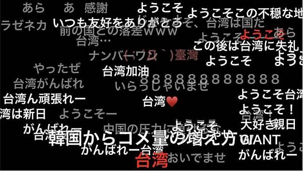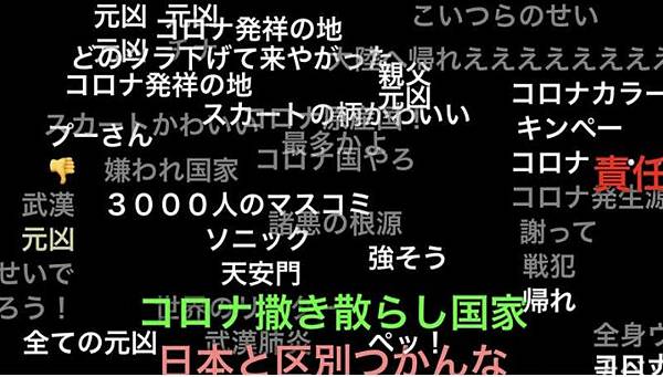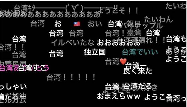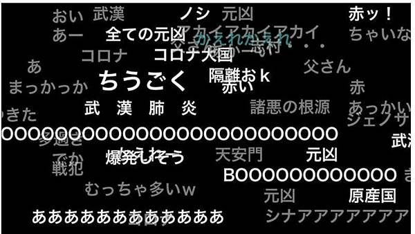 從圖片中可以發現,台灣代表團進場時,日本網友發出的彈幕都是正面含意的文字,替我國加油打氣;反觀中國代表團進場時,彈幕瞬間充滿暴戾之氣,滿是針對中國的厭惡,出現了「武漢肺炎」、「諸惡的根源」、「疫情發生地」以及「天安門」等詞語。