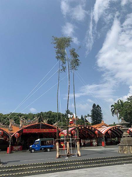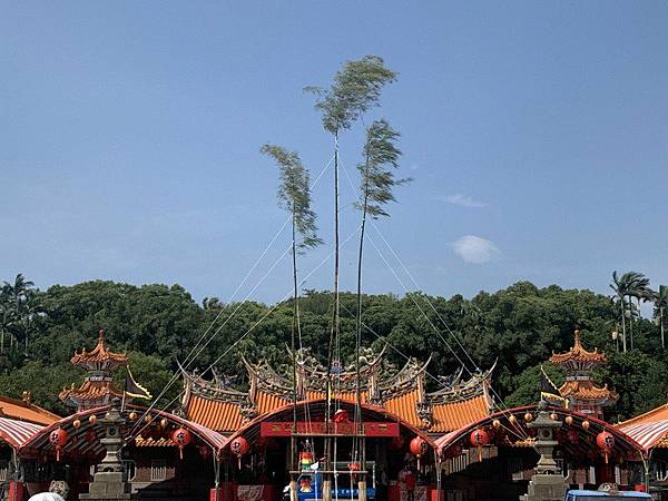 廟方就表示,豎燈篙(起燈篙)是傳統普度都會進行一環,利用3根長度至少40台尺的竹子,竹竿上綁上紅布、七星燈,為好兄弟照亮道路,也指引好兄弟們前來享用中元普度的供品。