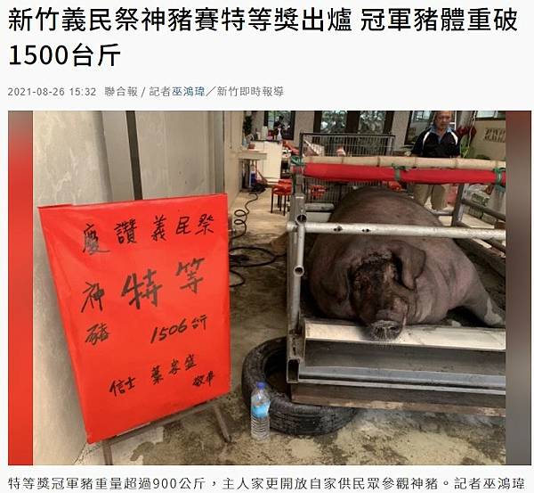 新竹義民祭神豬賽特等獎出爐 冠軍豬體重破1500台斤 | 桃竹苗 | 地方 | 聯合新聞網 https://bit.ly/38kK84O