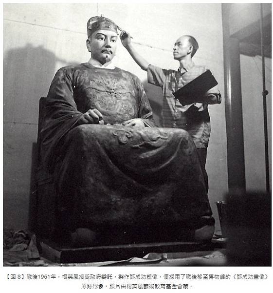 【圖 8】戰後1961年,楊英風接受政府委託,製作鄭成功塑像,便採用了戰後移至博物館的《鄭成功畫像》原跡形象。照片由楊英風藝術教育基金會藏。1910年,一位日本畫家與臺灣「國寶」《鄭成功畫像》的近距離接觸 https://bit.ly/2WfxvoN