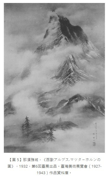 【圖 5】那須雅城,《西歐アルブス﹑マツタ-ホルンの圖》,1932,第6回臺展出品。臺灣美術展覽會(1927-1943)作品資料庫。