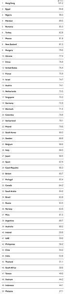 前3名分別為愛爾蘭、西班牙與阿拉伯聯合大公國