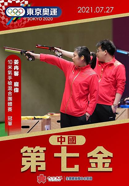 奧運10米氣手槍混合團體賽 龐偉及姜冉馨為中國奪金