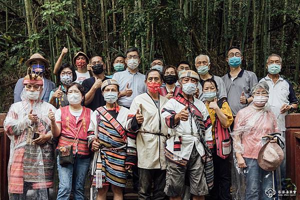 客家委員會今(31)日於苗栗大湖雅悠圳舉辦立碑石儀式,現場來賓進行大合影。