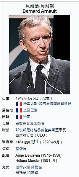 公開資料顯示,這位72歲的老人是法國時尚界大亨,也是法國奢侈品集團酩悅軒尼詩路易威登 (LVMH) 集團的創始人、董事長以及首席執行官。