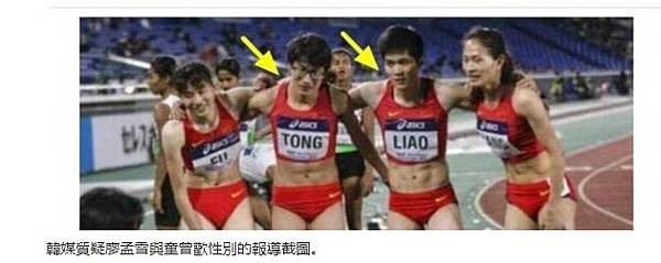 韓媒質疑廖孟雪與童曾歡性別的報導截圖。