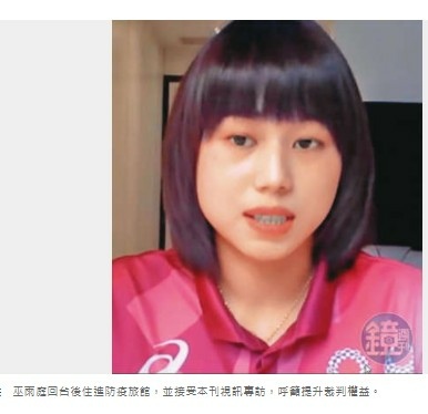 巫雨庭回台後住進防疫旅館,並接受本刊視訊專訪,呼籲提升裁判權益。© 由 鏡週刊 提供 巫雨庭回台後住進防疫旅館,並接受本刊視訊專訪,呼籲提升裁判權益。