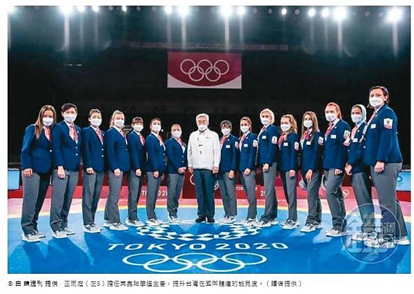 巫雨庭(左5)擔任東奧跆拳道主審,提升台灣在國際體壇的能見度。(讀者提供)© 由 鏡週刊 提供 巫雨庭(左5)擔任東奧跆拳道主審,提升台灣在國際體壇的能見度。(讀者提供)