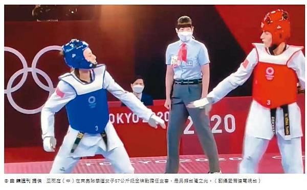 7月25日晚間,在東京奧運的跆拳道賽場,57公斤級的台灣選手羅嘉翎不負眾望,成功奪下一面銅牌,瞬間成為國人的目光焦點,但很多人都沒注意到,同一時間,美國與俄羅斯的金牌戰中,一名台灣女裁判在場上執法,還好電視台主播念出她的名字「巫雨庭」,並說她是另類的台灣之光。