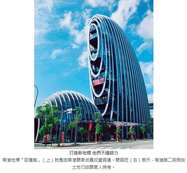 南港地標「砳建築」(上)就是由南港闕家成員投資興建。闕興旺(右)表示,南港路二段兩側土地仍由闕家人持有