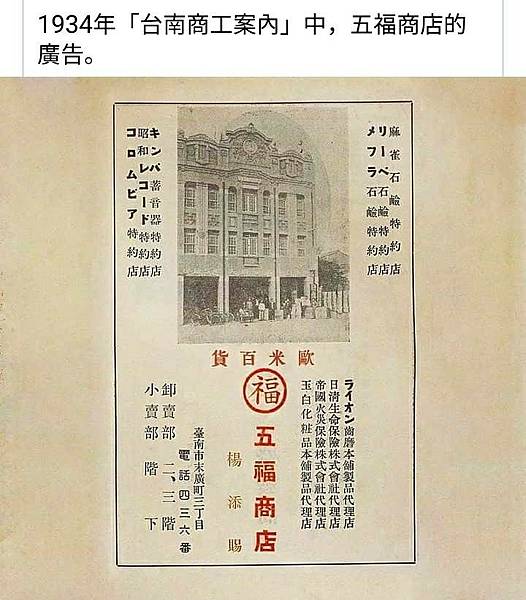 當年的五福商店規模算是蠻大的,整條銀座通(今中正路)上除了林百貨之外,還聚集了許多百貨商行,而五福商店就是規模較大的商店之一。