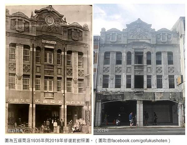 圖為五福商店1935年與2019年修復前對照圖。(圖取自facebook.com/gofukushoten)