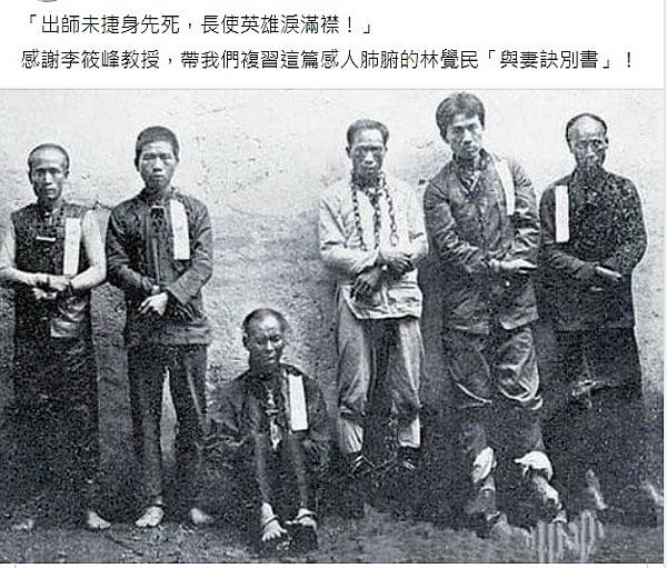 〔圖片說明〕革命失敗被捕的烈士,右二為林覺民。