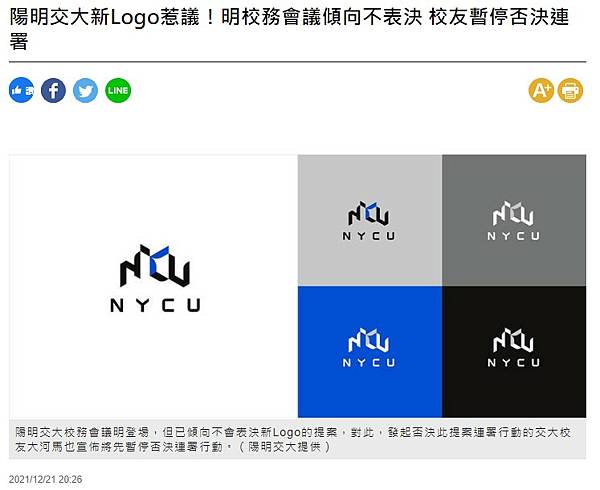 陽明交大新Logo惹議!明校務會議傾向不表決 校友暫停否決連署 - 臺北市 - 自由時報電子報 https://bit.ly/3J4EK70